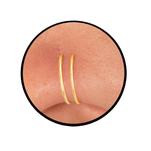 Gold Double Hoop Nose Piercing- 20 Gauge 14k Gold-Filled Spiral Nostril Ring - Golden Handcrafted Twist Facial Jewelry Design