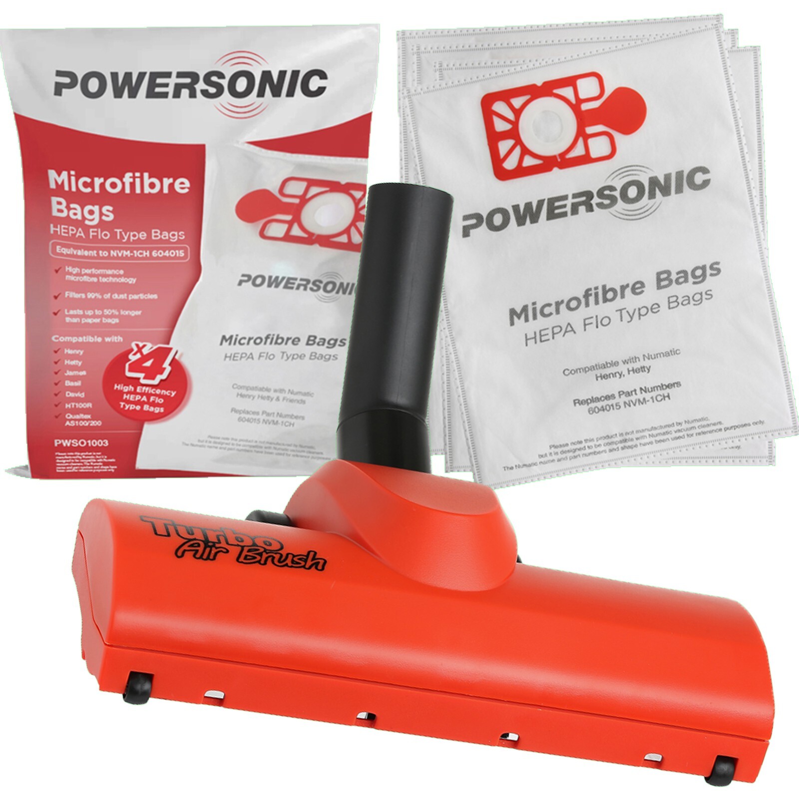 Red Airo Turbo Tool For Henry Hetty Hoover Floor Carpet Brush & Cloth Bags x 4