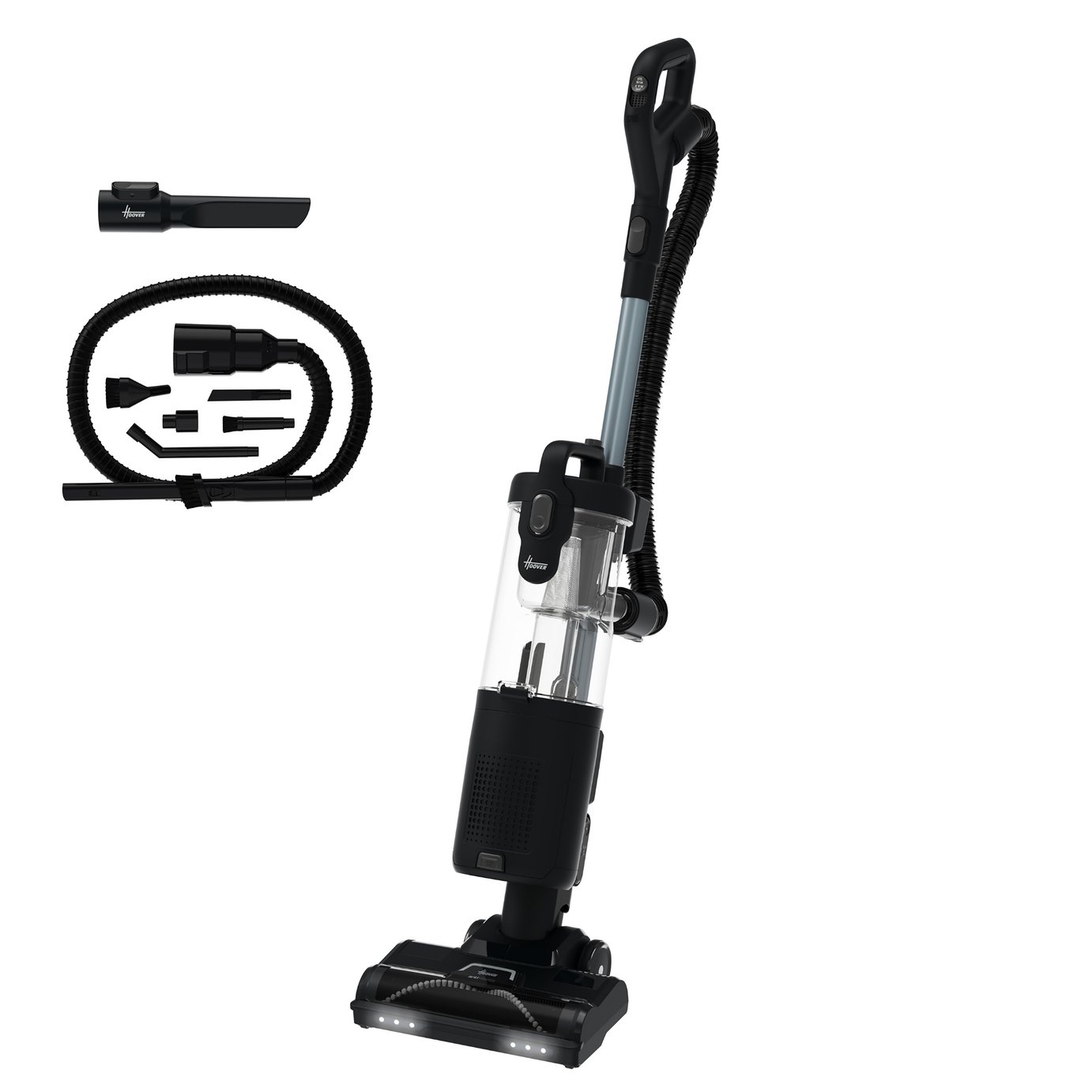 Hoover HL4 Upright Vacuum Cleaners 850W Lift-Away, Anti-Hair Wrap, Anti-Allergy with LED Headlights, 2.5L Bin, 7.6m Cord, Crevice Tool and Car Tool Black/Grey HL420HMC