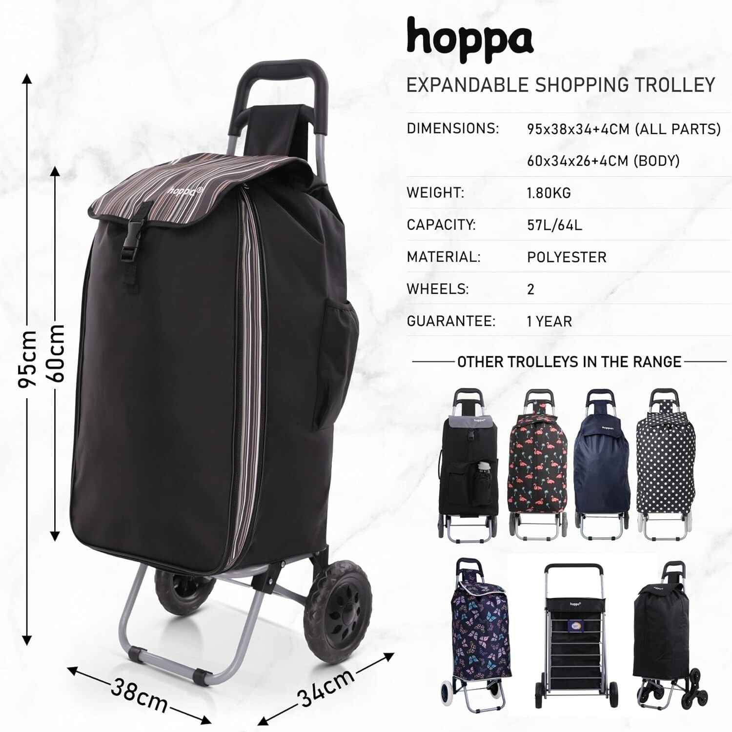 Hoppa Expandable Large Capacity Lightweight 2Wheel Shopping Trolley Hard Wearing