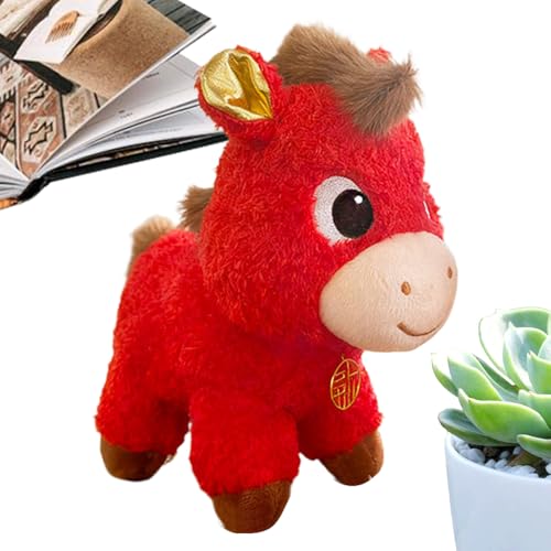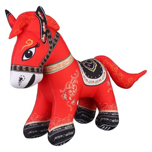 Plush Horse 2026 Year - Chinese Horse Doll | Lucky Mascot Plush Animal | Soft Red New Year Ornament for Home Office Decorations, Birthdays, N