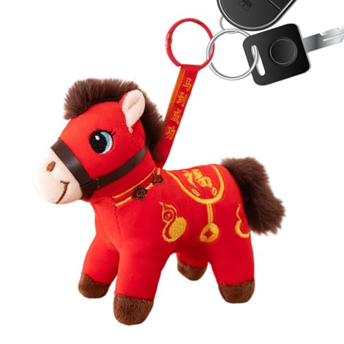 Chinese New Year Horse Doll, Portable Soft Animal Keyring | Plush Toy Horse Padded | For Car Bags Showcase Home School Offices Cafe Bookcases Sofas Shelves Teche Beds