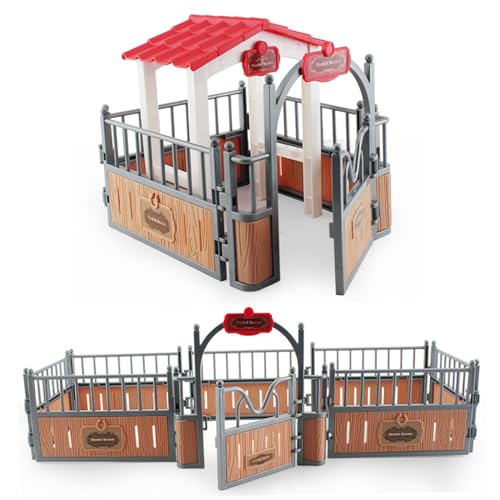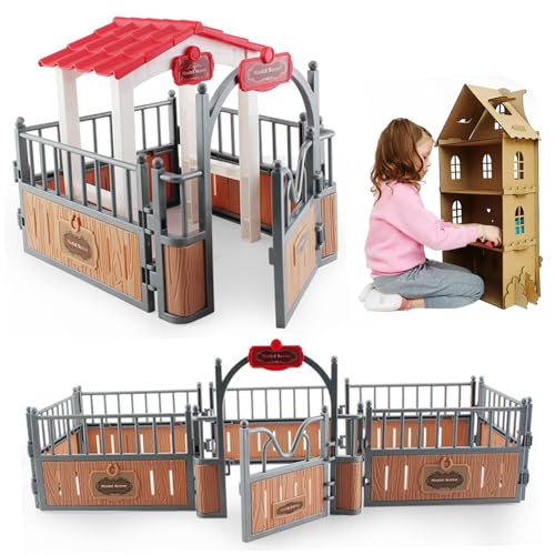 AZIDWERYQ Horse Stable Playset Fence 17.3x7.9x5.9'' Realistic Plastic Horse Barn Playset Fence Imaginary & Creative Educational Toys Accessories for Lovers Toys