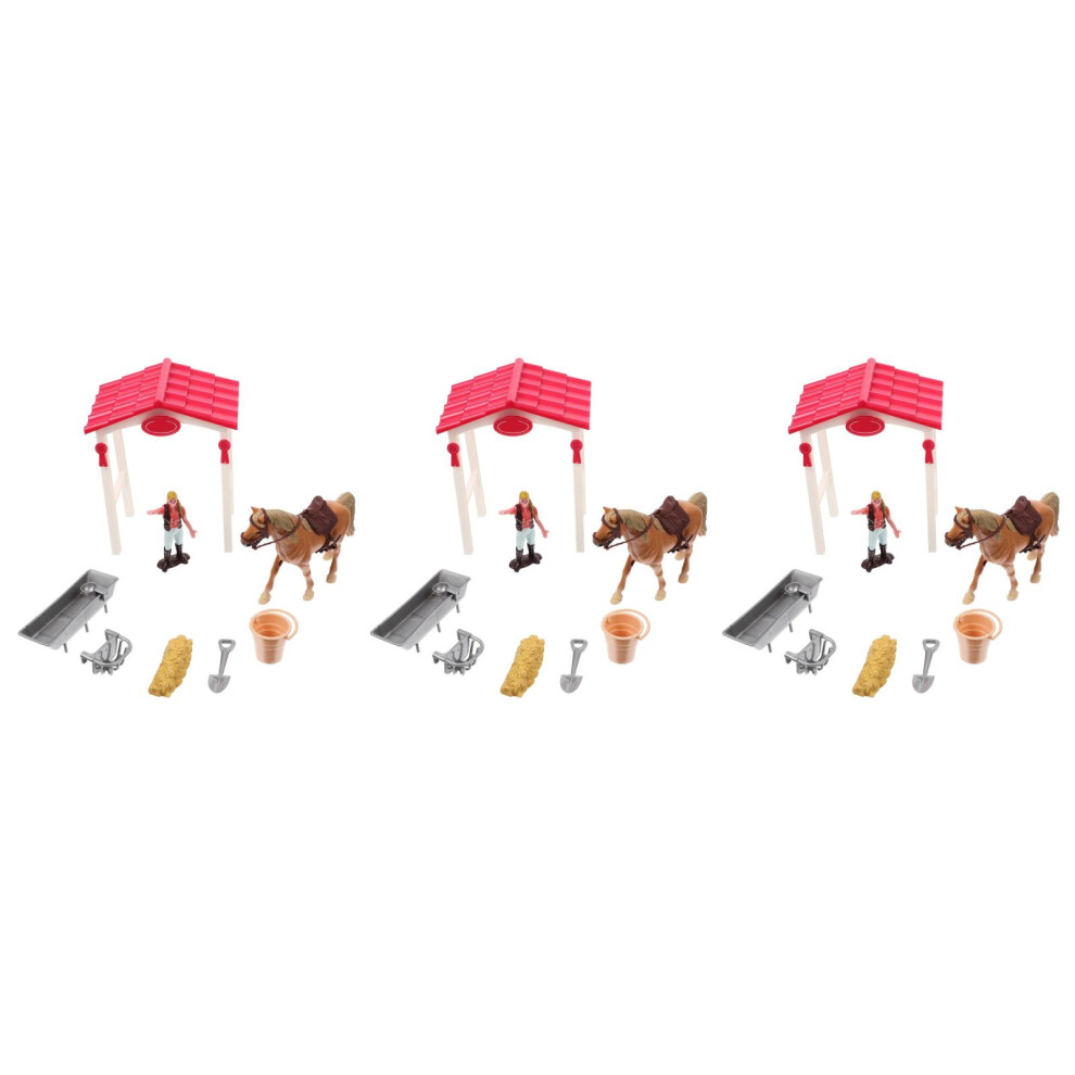 3Sets Assorted Farm Toys Horse Stable Playset Durable Model