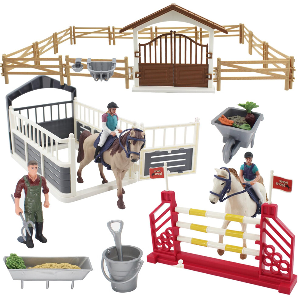 The Magic Toy Shop Horse and Rider Playset with 14 Pieces - Complete with Yard Fence, Trough, Tools - Kids Horse Toys for Boys and Girls, Horse Stable Toys, Plastic Horses, Horse and Stable Play Sets