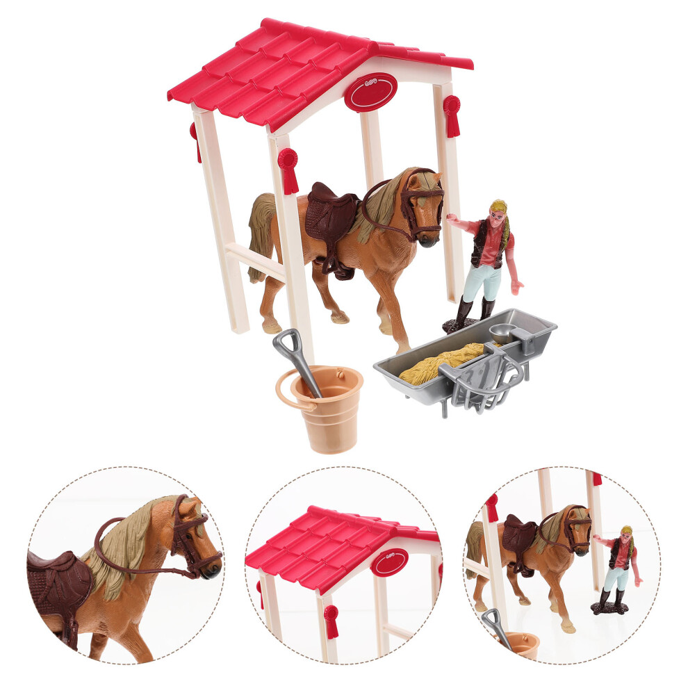 One Set Simulated Horse Stable Model Farm Toy For Kids Learning