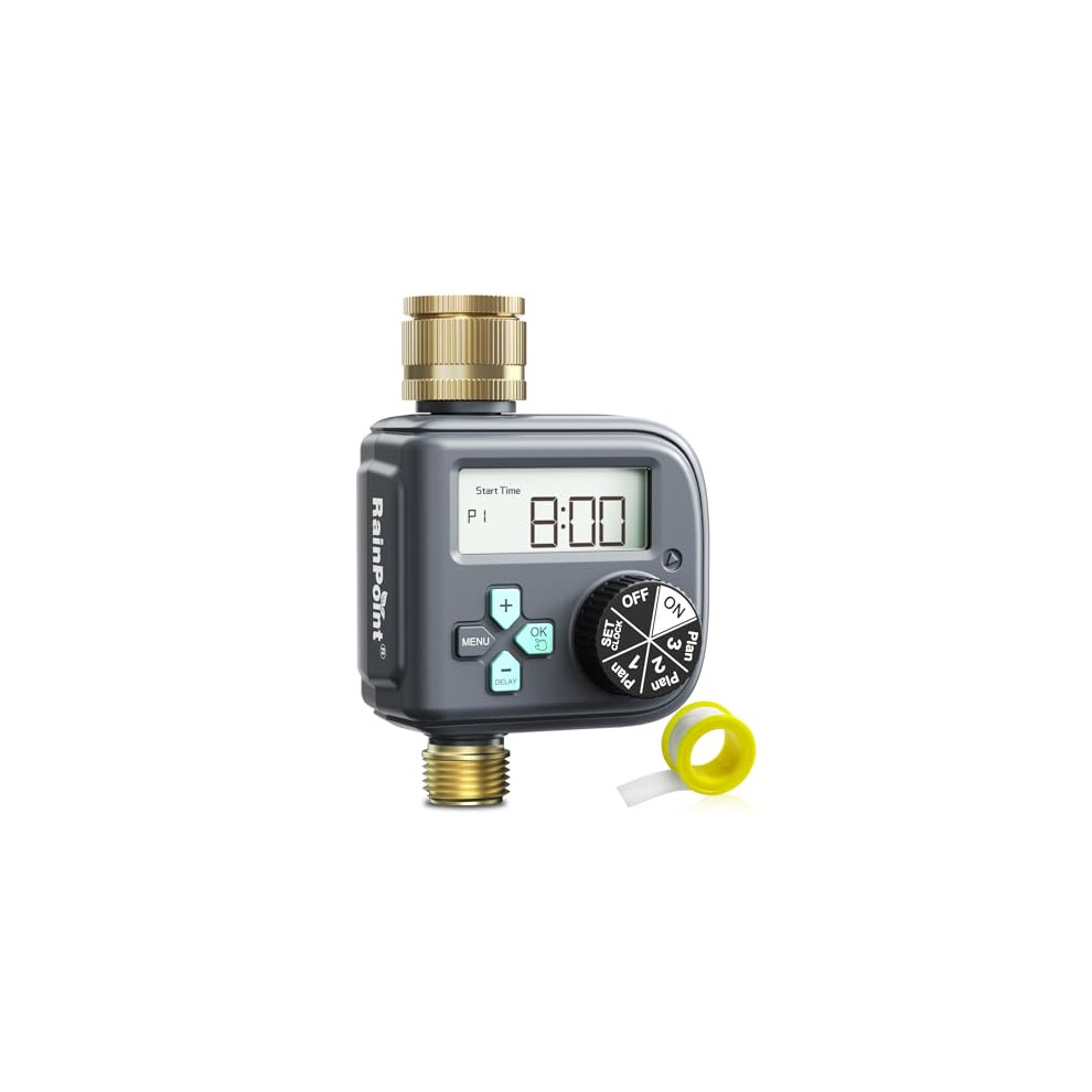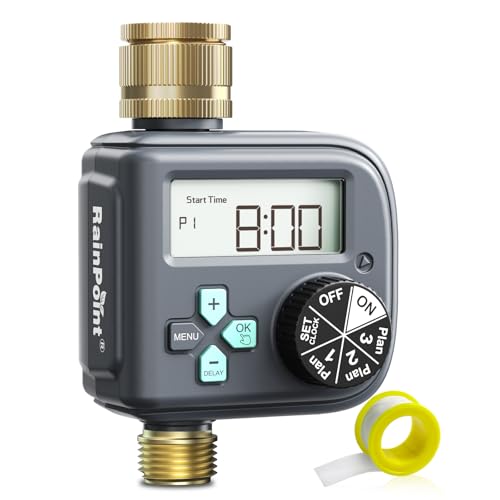 RAINPOINT Water Timer with Brass Inlet and Outlet, Irrigation Timer with 3 Independent Programs, Rain Delay, Hose Sprinkler Timer with