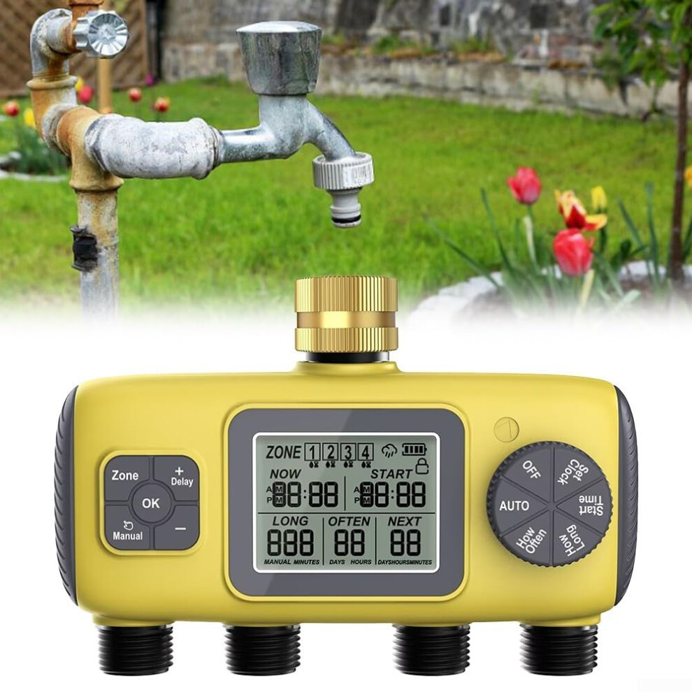 Smart 4 Zone Lawn Irrigation Controller with Brass Faucet Timer for Outdoor Garden Hose and Sprinkler Systems