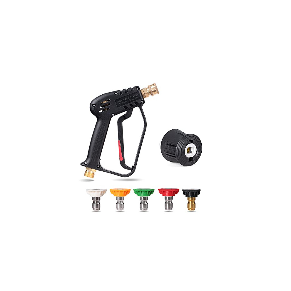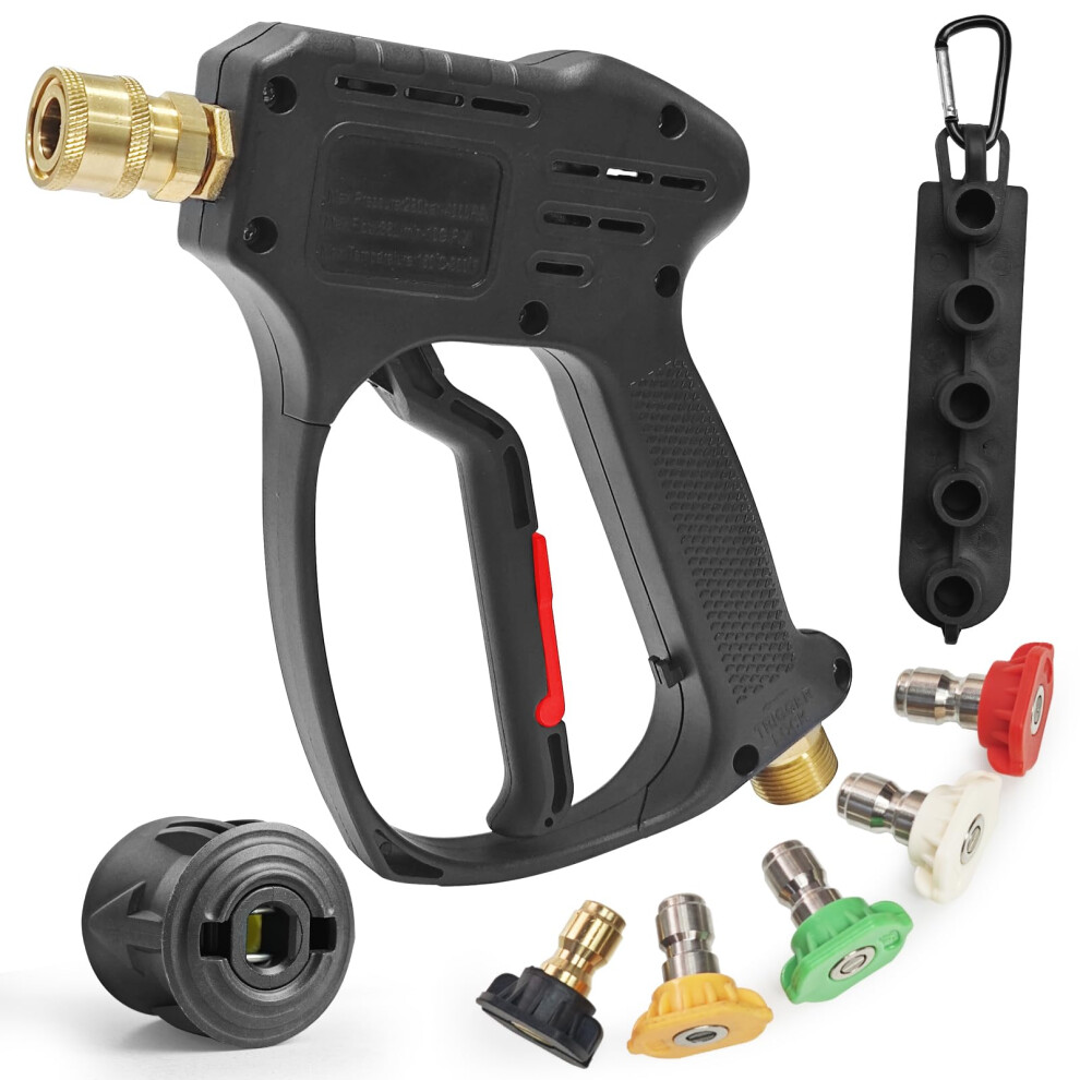 LKEVREG 4350 PSI High Pressure Washer Gun with 5 Water Nozzle Tip, Stubby Short Lance Pressure Washer Accessories for Car Cleaning, M22 14MM Hose Connector for Karcher K1-K7