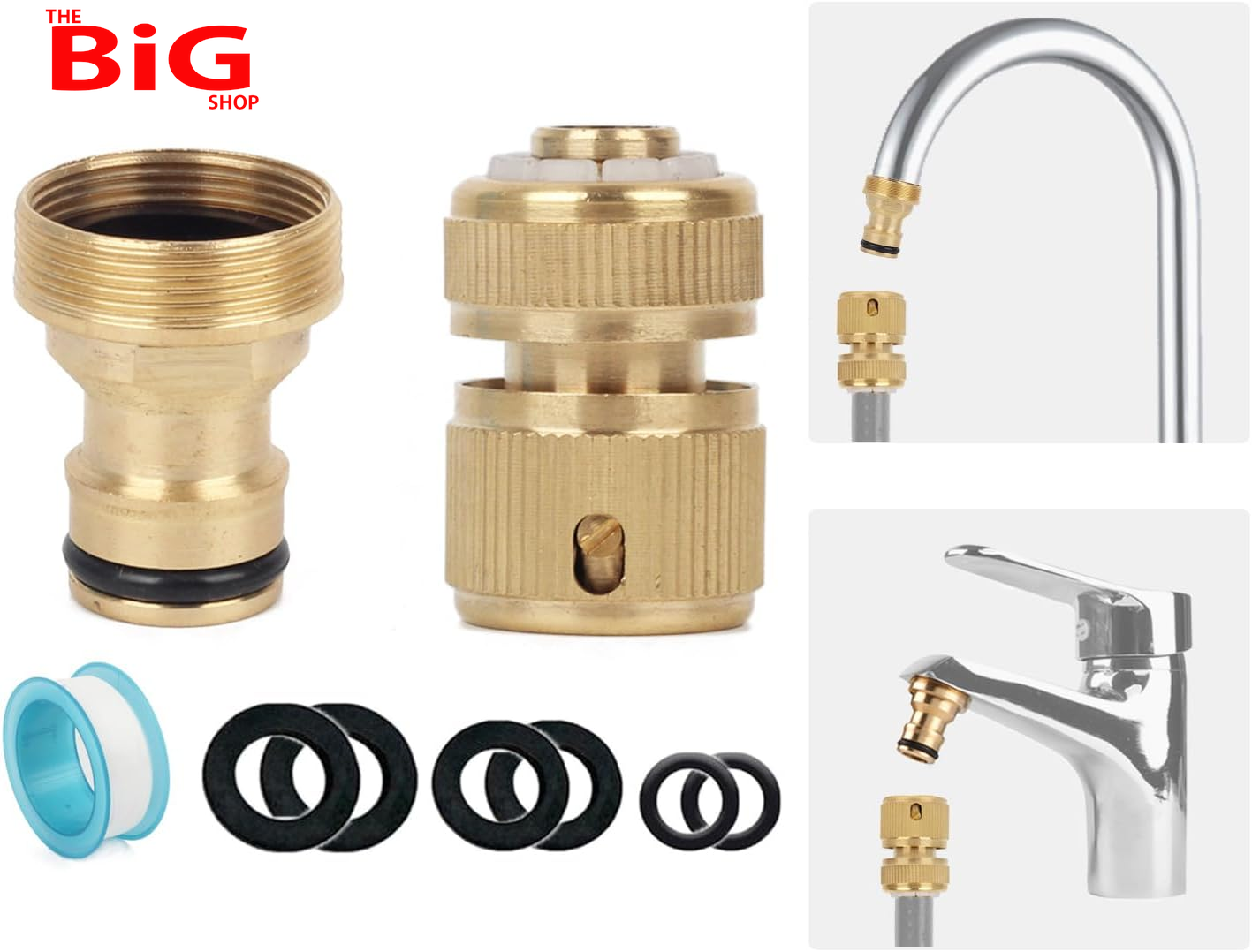 Faucet Tap Connector Adapter Garden Kitchen Water Hose Pipe Quick TO