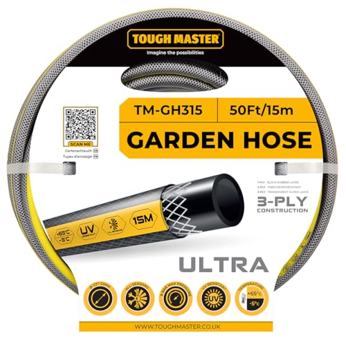 Garden Hose Heavy Duty Layer Flexible Reinforcement UV & Algae Resistant Hose Pipe for Garden, Pressure Washer, Garden Water Features TOUGH MASTER (50FT)