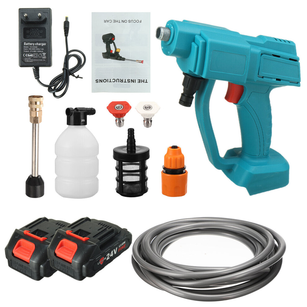 (Two Batteries, 24V) 24/48V 550W Cordless Electric High Pressure Washer Car Washing Machine Spray Guns Lance Hose Set W/ 1/2 Battery