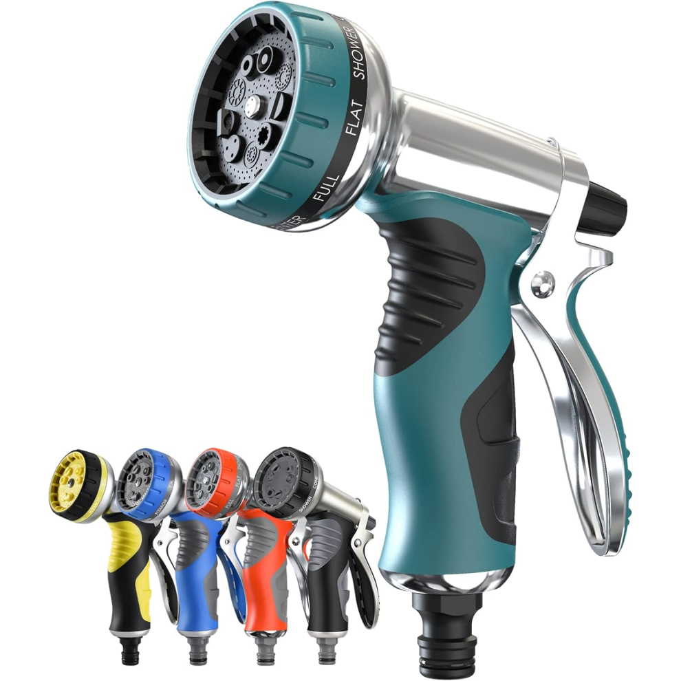 Hose Pipe Spray Gun, Garden Hose Nozzles & Spray Guns, 9 Adjustable Patterns Hose Gun, Heavy Duty Metal High Pressure Hose Nozzle/Water Spray Gun (Lake Blue)