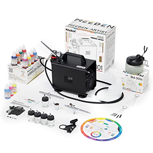 MEEDEN Airbrush Kit with Compressor and Guns - 1/5 HP Quite Air Compressor for Model Painting with 3 Dual-Action Airbrush Guns - 24 Colors 30ml Acrylic Spray Paint Set with Hose