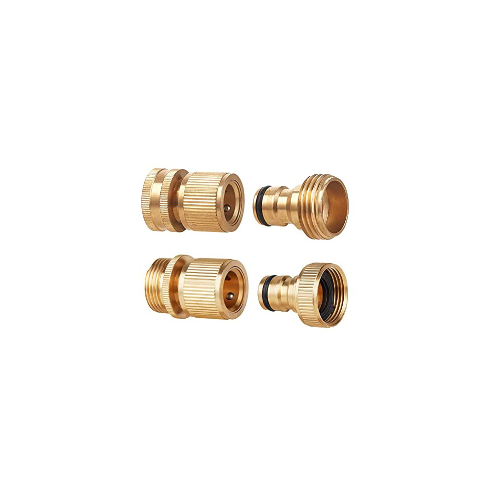 Garden Hose Quick Connect,3/4 inch Brass Female Thread Tap Connector Male Quick Connector Adapter Hose Connectors Hose Fittings for Car Wash Guns