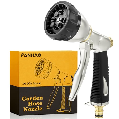 FANHAO Hose Pipe Spray Gun, 100% Heavy Duty Metal Garden Hose Spray Gun with 7 Spray Patterns, High Pressure Hose Nozzle with Ergonomic Handle for Watering Plants & Lawns, Washing Cars & Pets