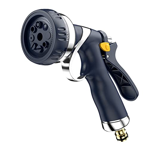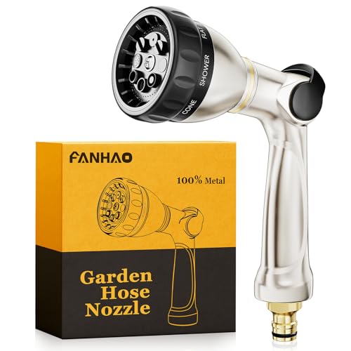 FANHAO Hose Pipe Spray Gun, 100% Heavy Duty Metal Hose Spray Gun with Thumb Control, High Pressure Hose Nozzle with 8 Adjustable Spray Patterns for Watering Plants, Washing Cars and Showering Pets