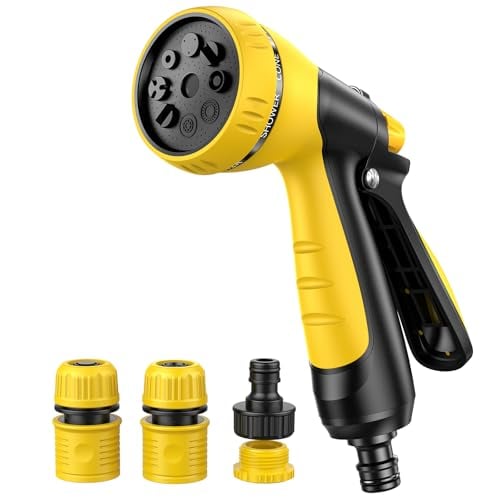 Hose Pipe Spray Gun,9 Adjustable Patterns Garden Hose Nozzles & Spray Guns, Heavy Duty Metal High Pressure Hose Nozzle/Hose Gun (Yellow-1Pack)