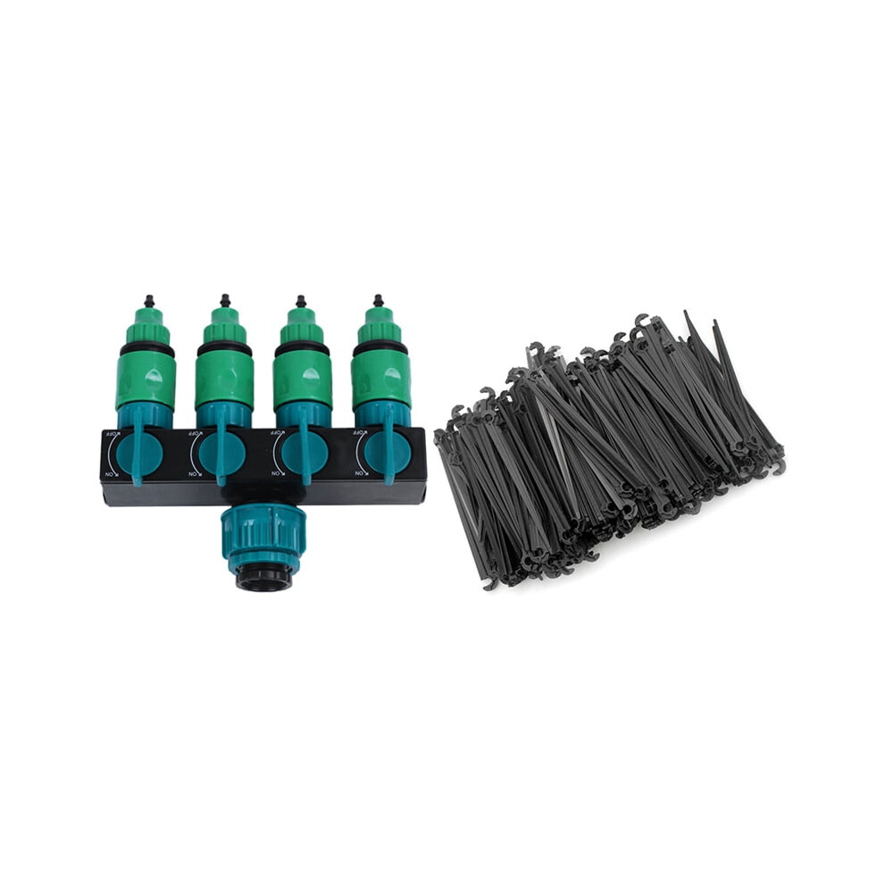 1 Set Garden Hose Splitter Water Pipe Tap Connector & 1 Bag 200 Pcs Irrigation Drip Support Stakes 1/4 Inch Tubing Hose