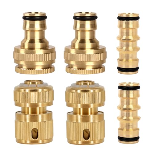 6 Pack Brass Garden Hose Connectors, Hose Pipe Connector & Tap Connector Kit, Quick Connect Hose Fittings for 1/2 Inch Garden Hose Pipes