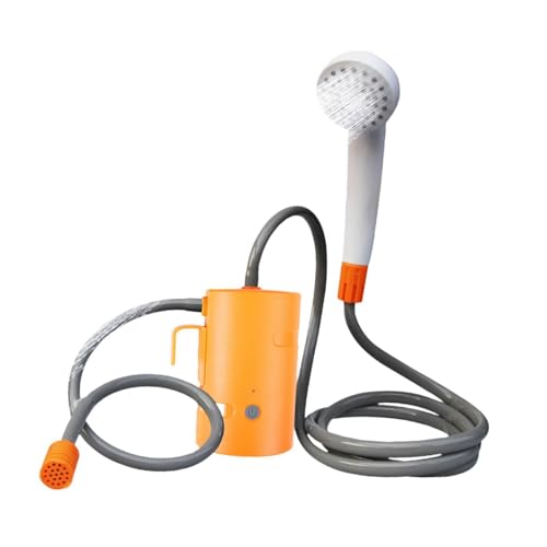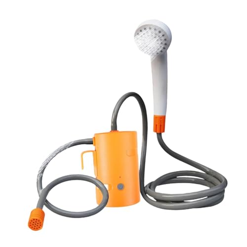 ICDKOYK Portable Shower Outdoor Electric Washer Camping Bathing Solution Easy To Carry Pump Head USB Hose For Hiking Portable Shower Hose Head Pump For Camping Hiking, Orange with Remote, 1.8m