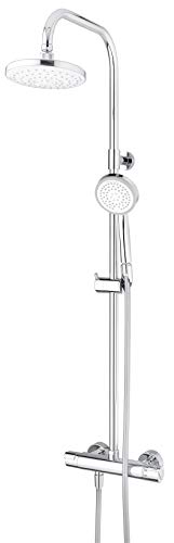 Delvac 213870MC017 Shower System (Hose, Thermostatic Battery, Shower Head and Hand-Held Shower Head Anti-Limescale Knobs, Hose Length 160 cm) Chrome