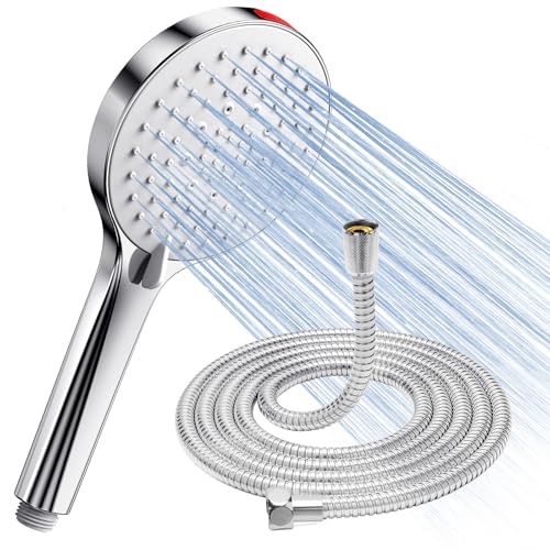 LULUMAIC Hand Showers, Dual Shower Heads with 3 Spray Settings, Hand Showers, Detachable Shower and Extra Long Hose, Luxurious Shower Head Combination with Chrome Finish and 3-Way W