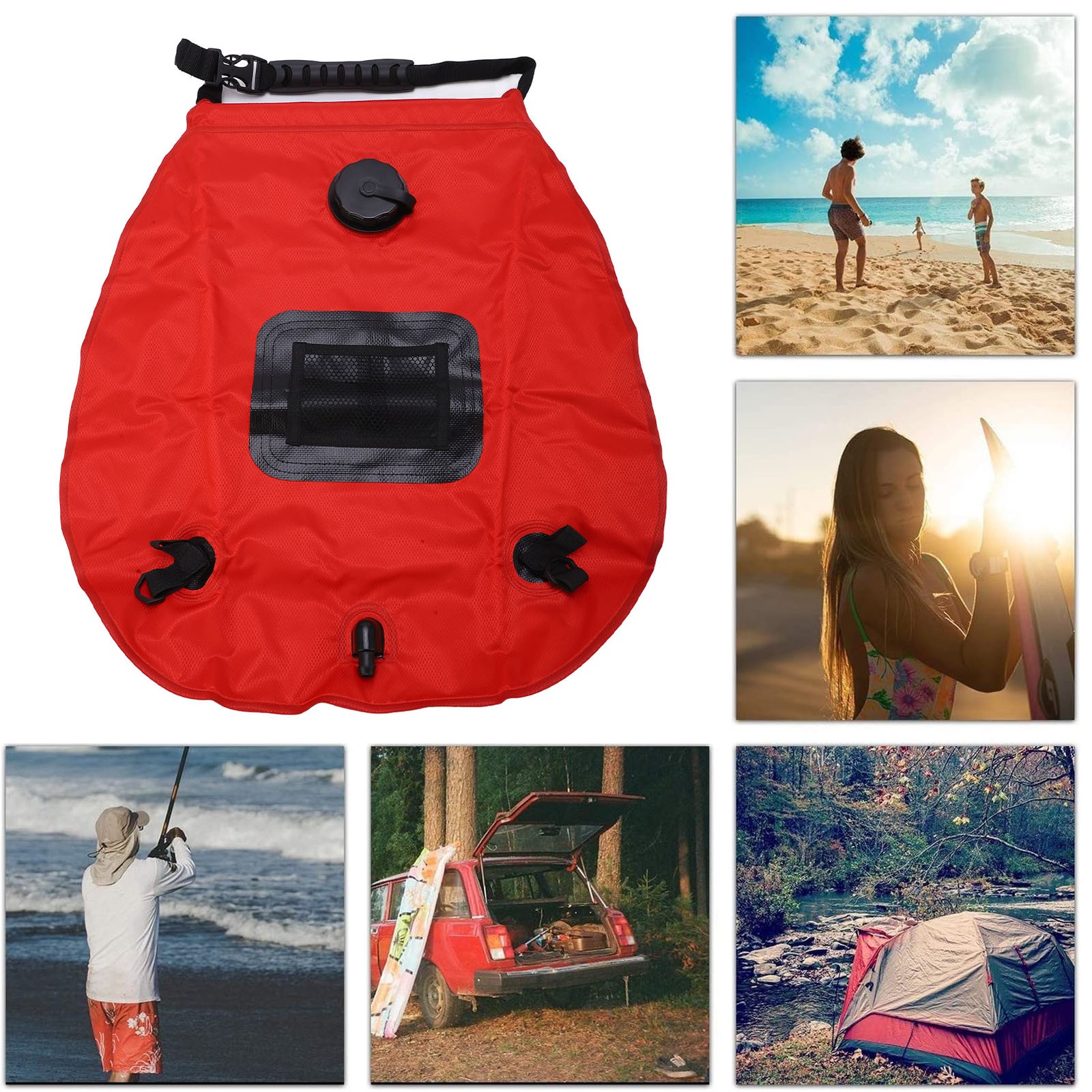 Generisch Portable Shower for Camping - 20 Litre Removable Solar Bath Bag Including Shower Head and Hose - Camping Shower Head for Outdoor Indoor Travel Cabin Garden Patio Yard Park