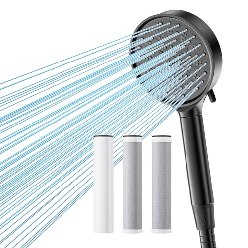 Hard Water Filter Shower Head and Hose, Shower Head with 1 Pack 20 Stage Shower Filter and 2 Pack Replacement 2.0 Carbon Shower Filter, Water Softener Showerhead for 99% of Chlorine Remove (Black)