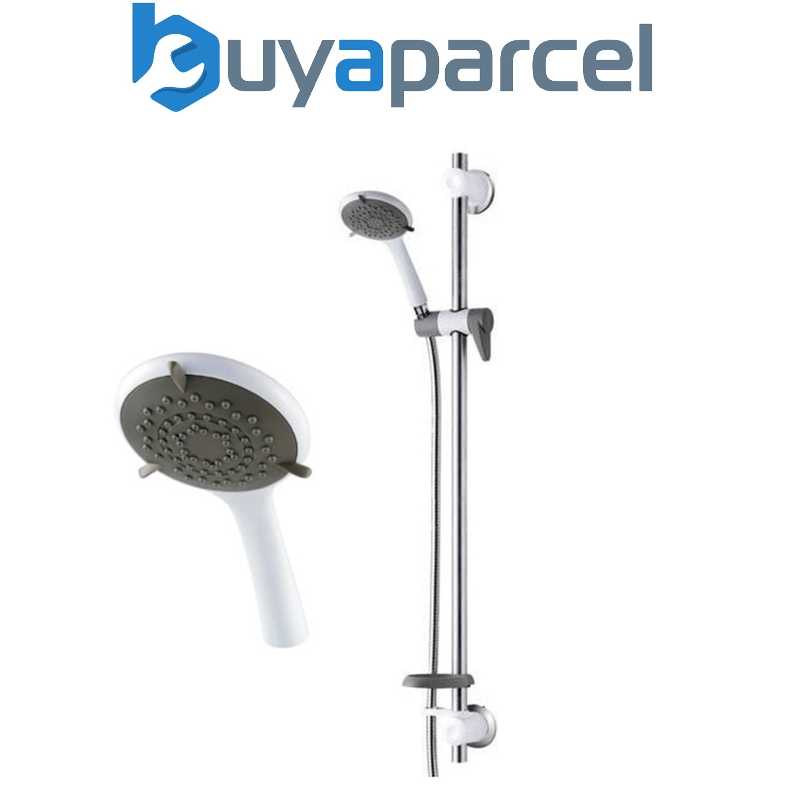 Croydex Amalfi White Shower Set -1 Function Shower Head, 1.5m Shower Hose & Adjustable Shower Head Holder - Fits Standard British Fittings, 665mm Riser Rail for All Shower Types