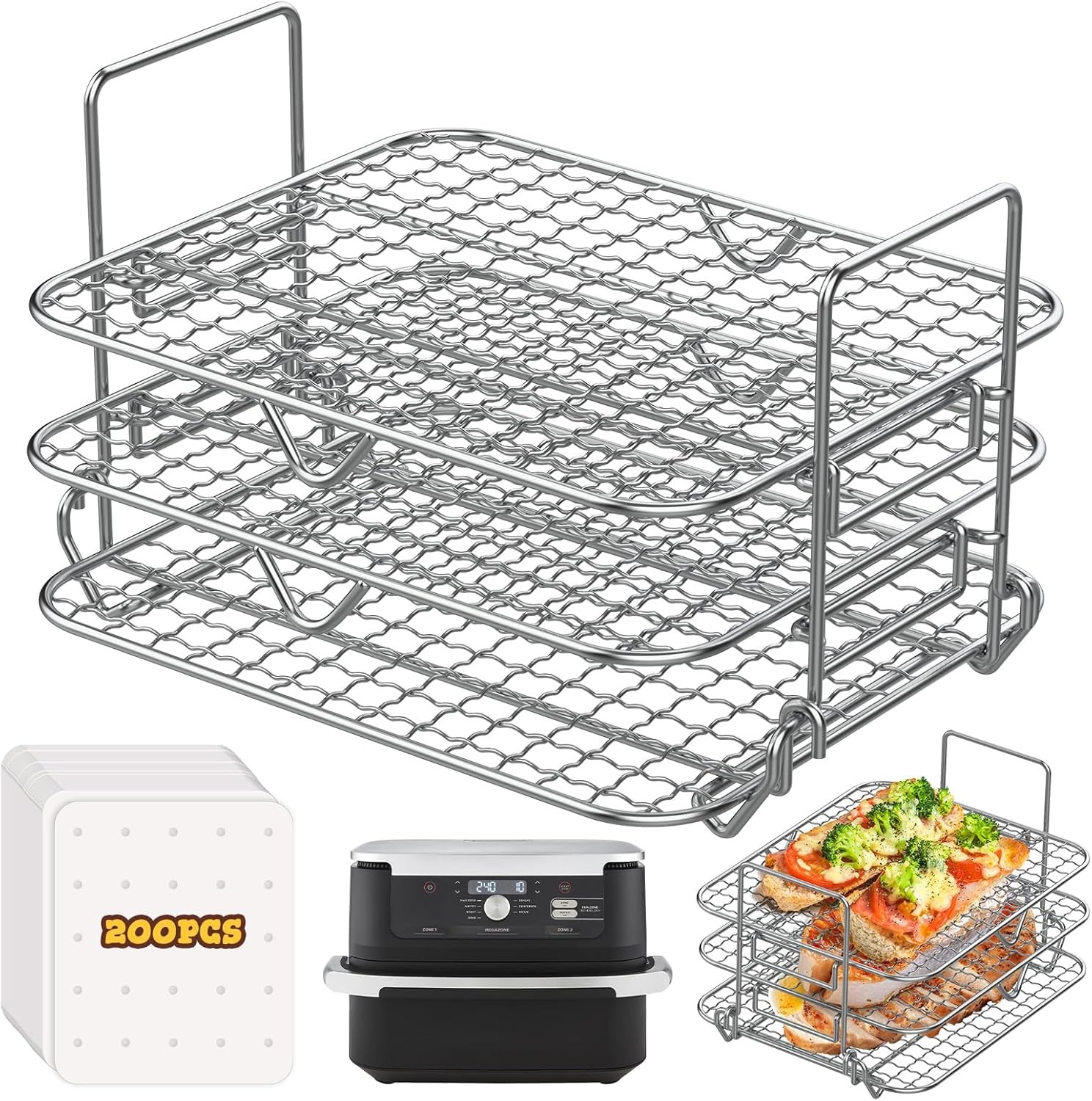 Hot Air Fryer Accessories for Ninja Dual, 3 Tier Hot Air Fryer Cooking Grate, M