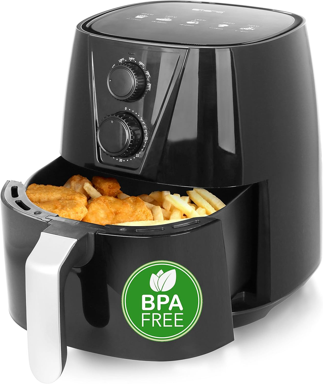 alpina Airfryer 2L - Air Fryer Suitable for 2 to 3 People - Hot Air Fryer with Timer and Adjustable Temperature - Hot Air Oven Airfryer - Plastic - Black
