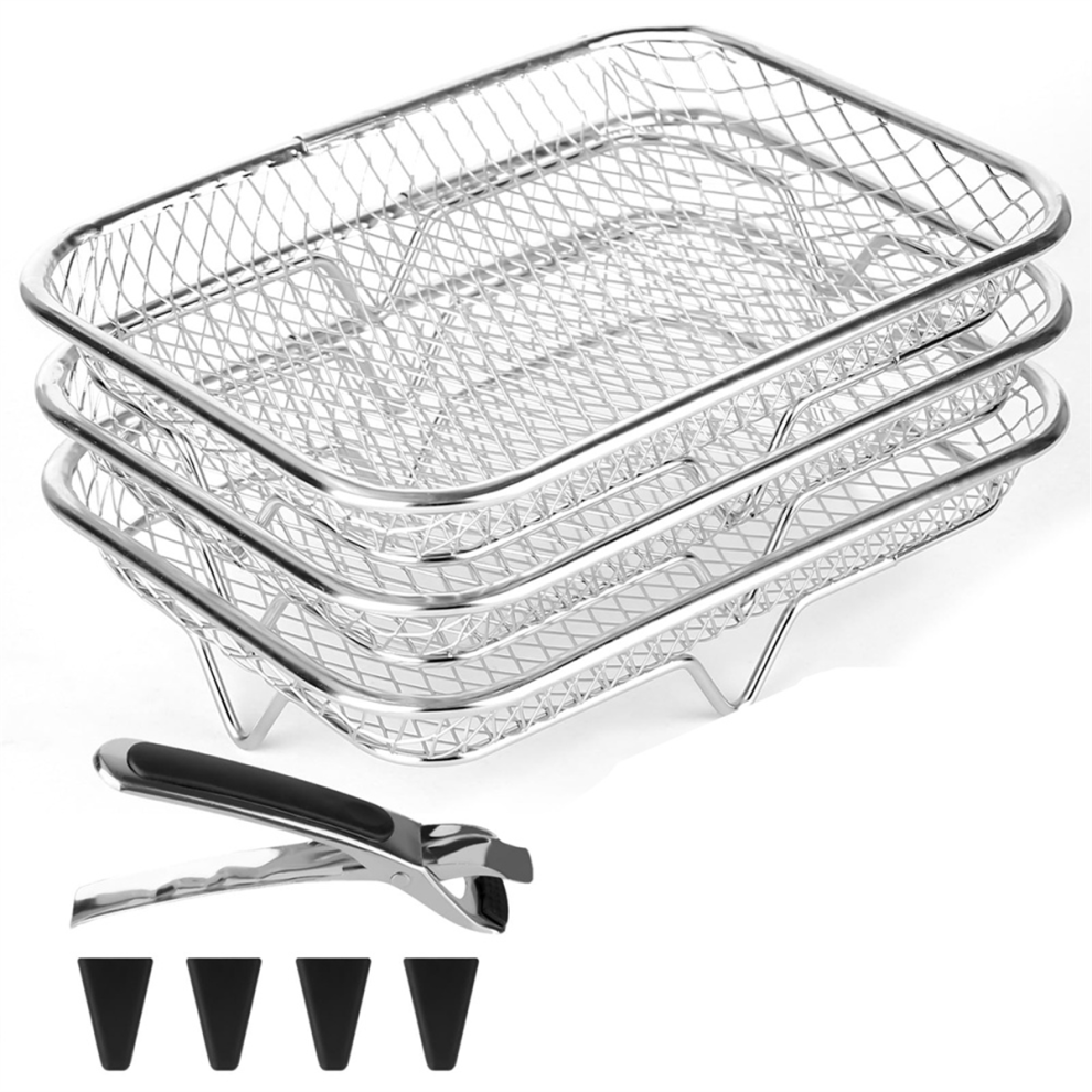 Grids for Hot Air Fryer,3 Layer Stackable Fryer Shelf,304 Stainless Steel,for Oven,Airfryer Accessories, Rectangular