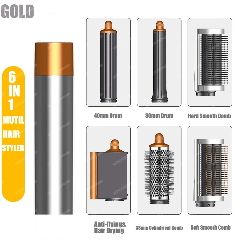 (As show, One size) 6In1 MultiFunctional Hair Dryer Comb Set Hot AirStyler Hair Curler Straightening Curling Iron Styli
