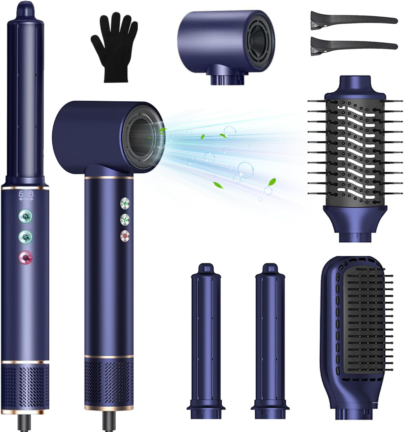 8 in 1 Hair Dryer Brush Set Air Hair Styler Curling Negative Ionic Foldable Hot Air Hair Dryer Brush, Hair Styling Tool for Curling Waves Straightening Volume Blowout Styles