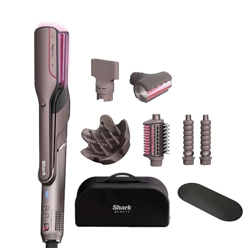 Shark FlexFusion Multi Hot Air Styler, Hair Dryer & Ceramic Straightener with 5 Styling Attachments, No Heat Damage, Scalp Shield, Storage Case, Silicone Mat – Cosmic Blush HD652SQUK