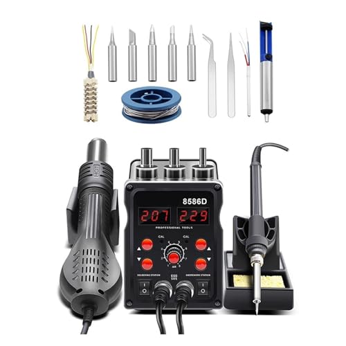 Soldering Station 2 in 1 Digital ESD Hot Air Blower Heat Gun Welding Solder Iron SMD Desoldering Rework Station Tool Efficient Precision(8586 set1)