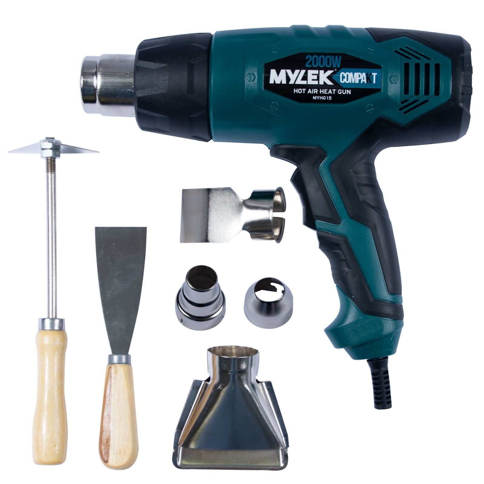 MYLEK Hot Air Heat Gun 2000W - Professional Handheld DIY Crafting, Paint Stripper, Varnish Stripping, Shrinking PVC, Wrapping, Embossing, Thawing, Bending, 2 Modes Max 650°C, 6 PCE Accessory Kit