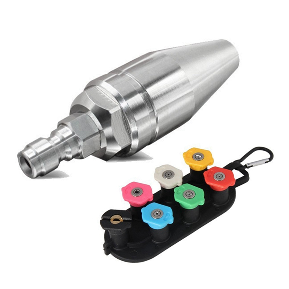 Pressure Washer Nozzle Stainless Steel Brass Compact Mini Drain Sewer Nozzle for Hot and Cold Water 5000 PSI G3/8in Female Thread