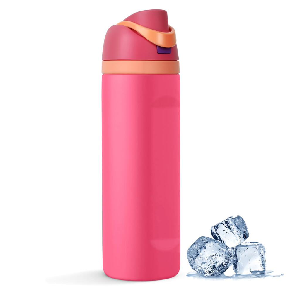ZAKVOP Thermos Flask with Straw, 710 ml Stainless Steel Drinking Bottle with 2-in-1 Lid, Sports Bottle, BPA-Free, Insulated Bottle for Hot and Cold