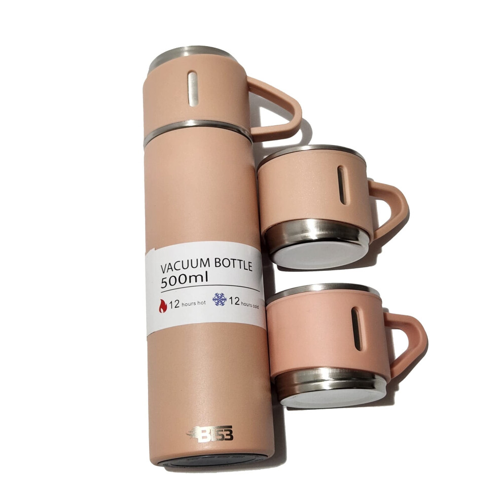 BT53 Stainless Steel 500 ML Vacuum Flask/ Bottle/ Thermos for Hot and Cold Drinks with Three Cups (Pink)