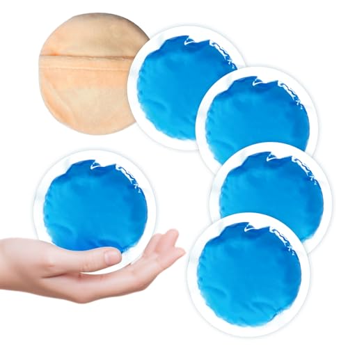 WORLD-BIO Small Round Gel Ice Pack for Injuries (5pcs, Reusable Hot & Cold Compress with Cloth Backing & Sleeve for Wisdom Teeth, Headache, Joint Pain, Swelling Relief, After Surgery Care