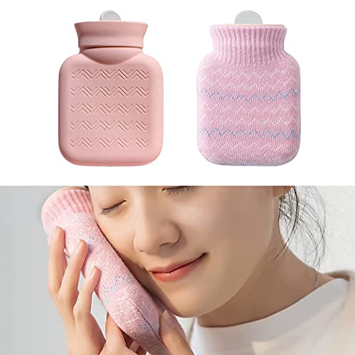Yundxi Hot Water Bottle for Hot Compress and Cold Therapy, Microwave Heated Hot Water Bottle with Knit Cover, Reusable Mini Silica Gel Hand Warmers Hot Water Bag (Pink)