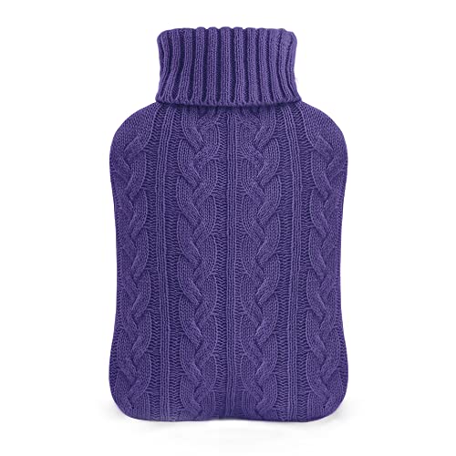 samply Hot Water Bottle with Knitted Cover, 2L Hot Water Bag for Hot and Cold Compress, Hand Feet Warmer, Neck and Shoulder Pain Relief, Lilac