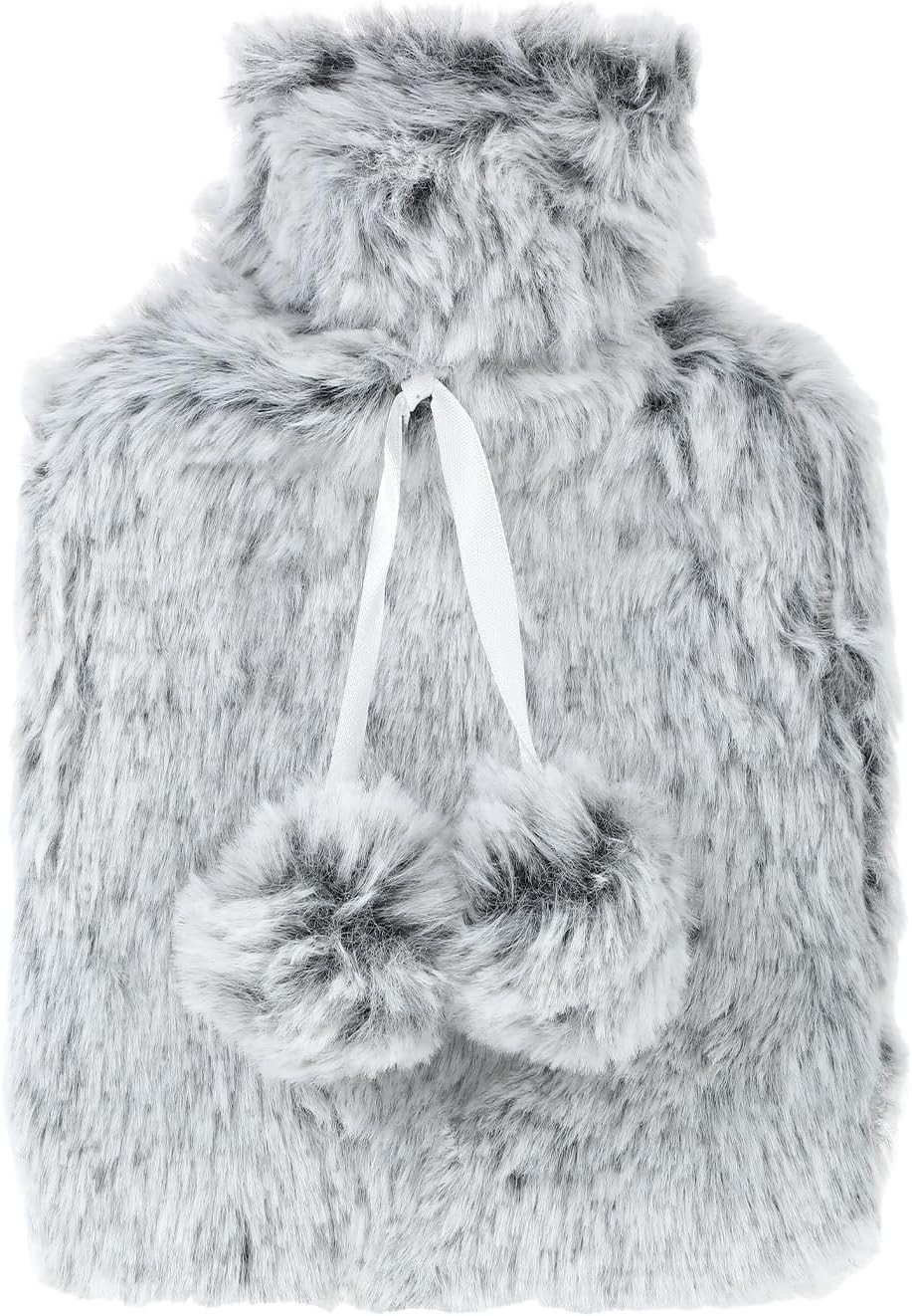 Hot Water Bottle with Cover - Fluffy Hot Water Bottles for Hands,Grey Furry Hot