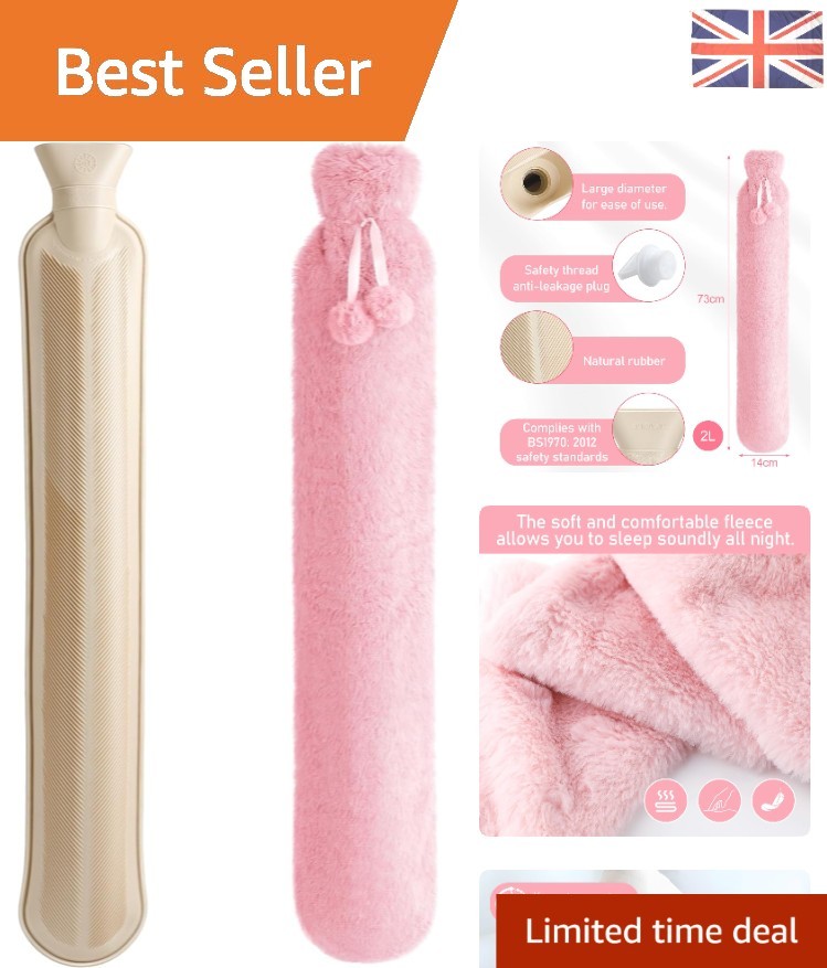 2L Extra Long Hot Water Bottle with Soft Cover for Neck & Shoulder Relief