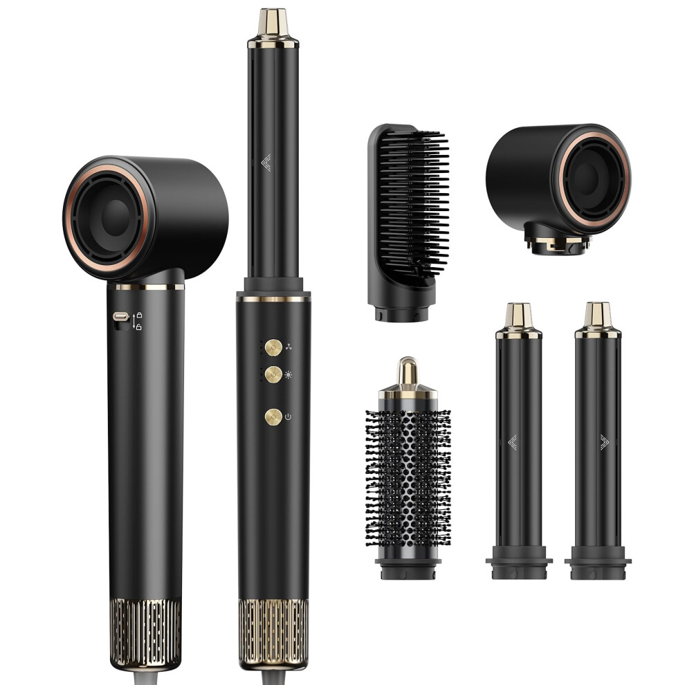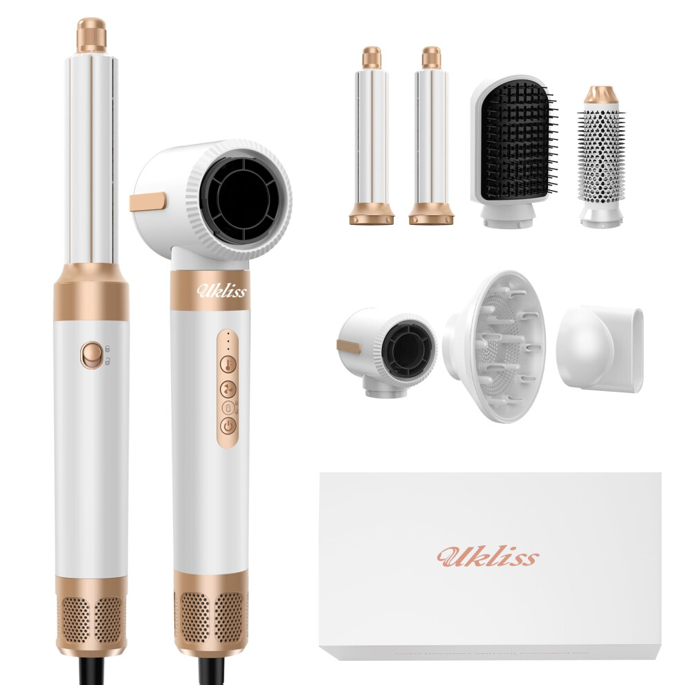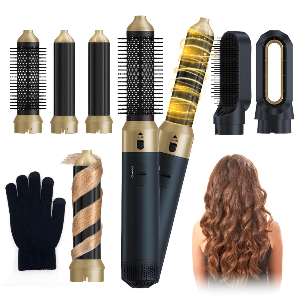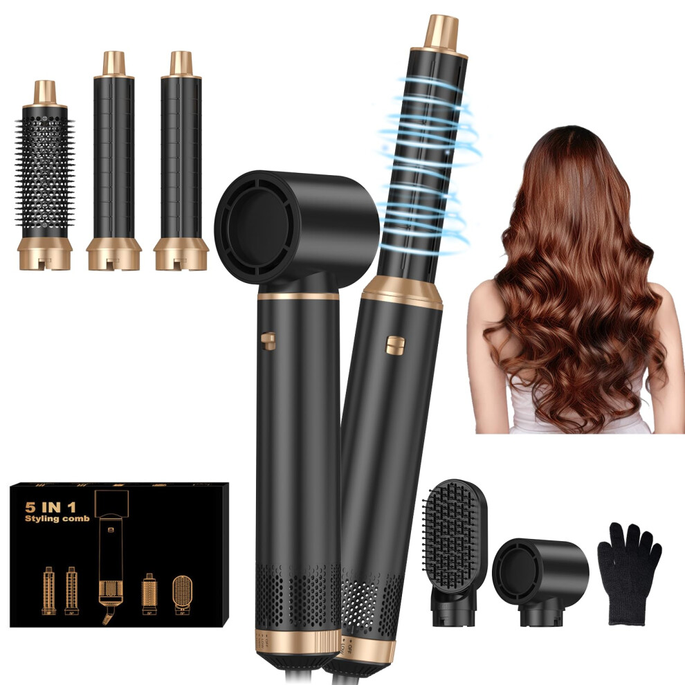 5 in 1 Hot Air Brush Styler with Automatic Rotating Hair Curler, Five Styling Heads, 20s Heatup