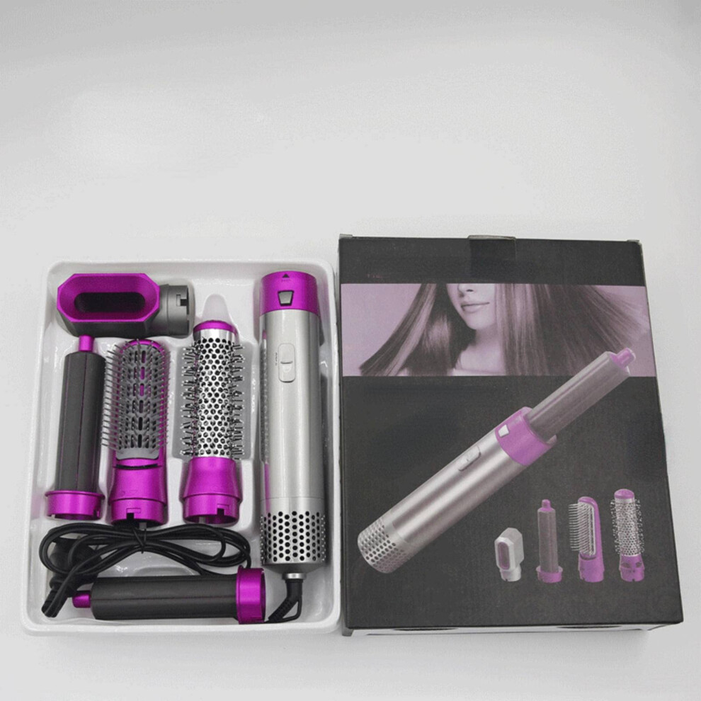 5 in 1 Hot Air Brush Styler with Negative Ion Technology and Curling Attachments Purple