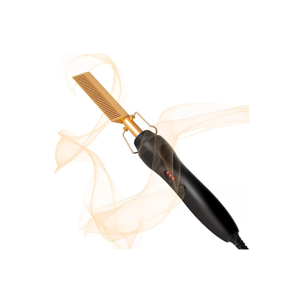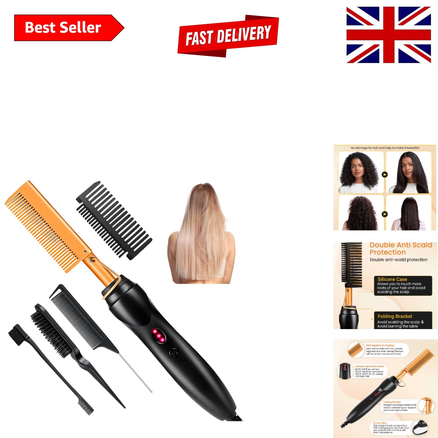 All-in-One Hair Styling Kit: Electric Hot Comb & 3 Brushes for Every Hair Type