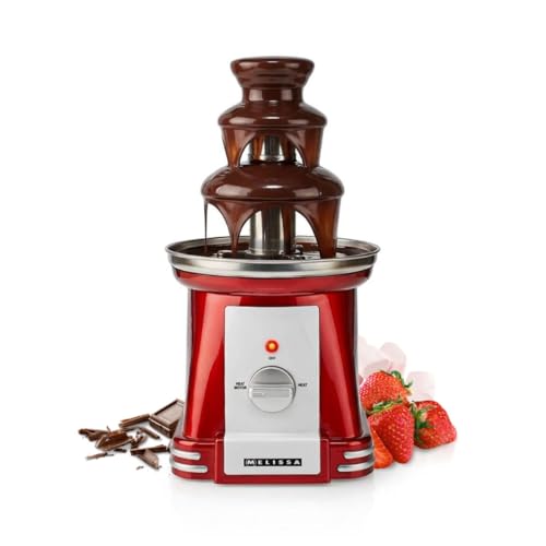 Melissa Retro Chocolate Fountain, 90W, 32cm Height 3-Tier Cascading Dessert Machine with Hot Melting Pot Base, 500g-1000g Capacity - Red